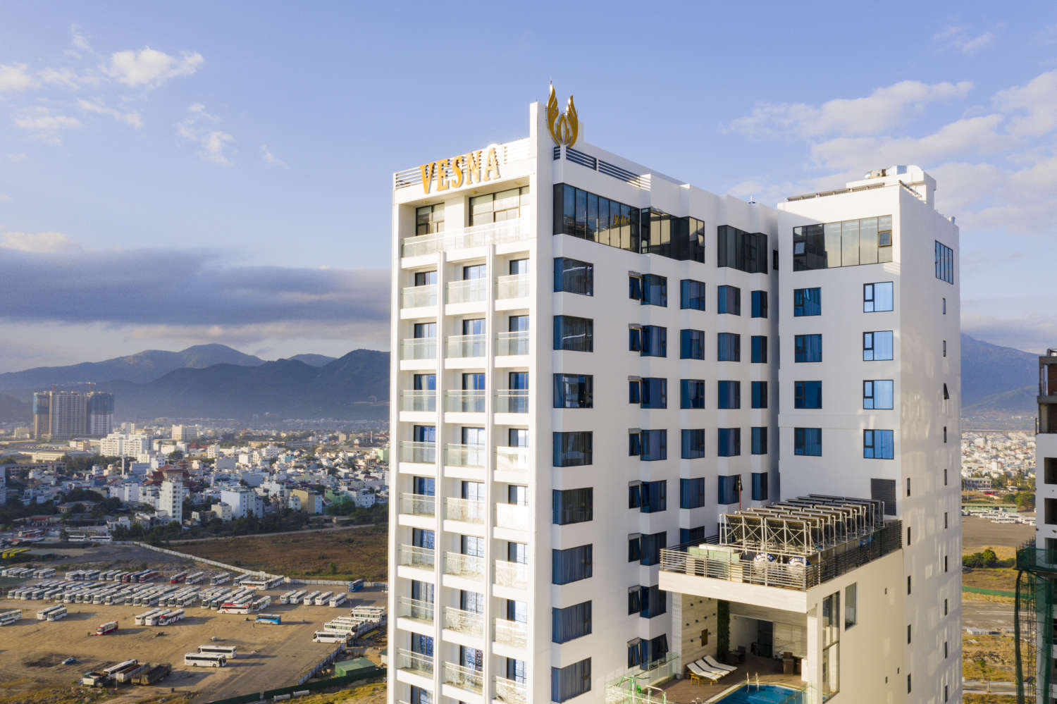 Khách sạn Vesna là khách sạn 5 sao tọa lạc tại Nha Trang, Việt Nam. Khách sạn nằm cách trung tâm thành phố khoảng 1 km, rất thuận tiện cho việc di chuyển. Được xây dựng vào năm 2018, Vesna Hotel có tổng cộng 344 phòng. Thời gian di chuyển đến sân bay khoảng 35 phút. Giờ check-in bắt đầu từ 14:00, và check-out trước 12:00. Khách sạn áp dụng chính sách lưu trú miễn phí cho trẻ em từ 3 đến 5 tuổi